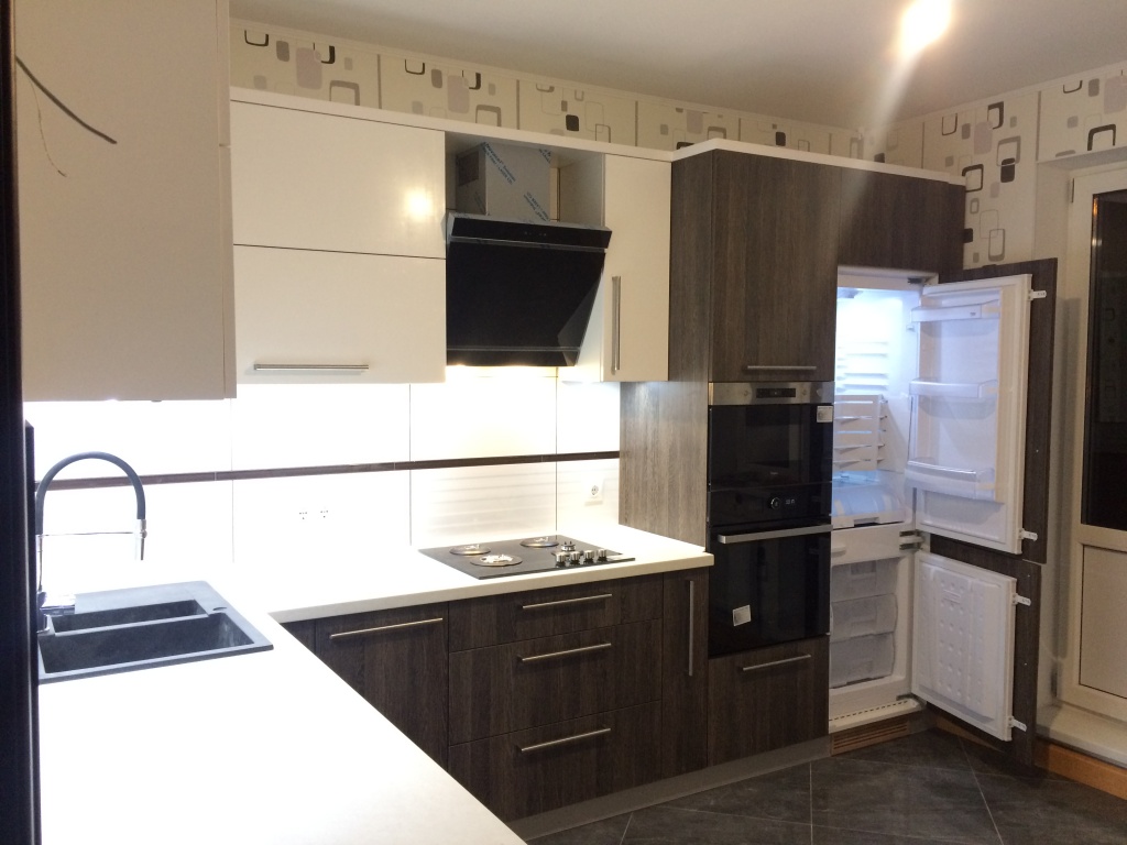 На фотографии образец кухни, которую мы можем изготовить по индивидуальному проектированию по размерам заказчика. Корпус: Kronospan, Swisspan by Sorbes, BYSPAN, ЛДСП Egger